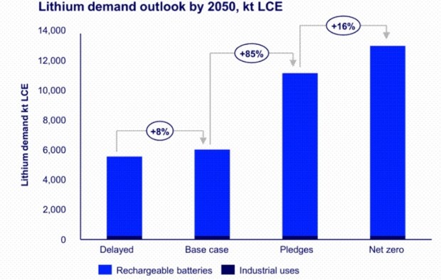 Основний фактор — різке зростання потреби в акумуляторах, насамперед для електрокарів. За прогнозами Wood Mackenzie, при швидкому темпі переходу на «чисту» енергію загальний попит на літій до 2050 року може перевищити 13 млн тонн (у еквіваленті карбонату літію). У разі повільнішої декарбонізації цей показник становитиме близько 5,6 млн тонн.